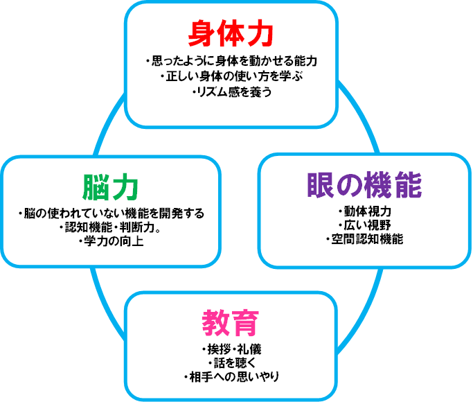 →人間はほとんどの情報を眼から取り入れて動いています。眼の機能を伸ばすことでスポーツだけでなく学力や生活の質そのものを向上させることができます